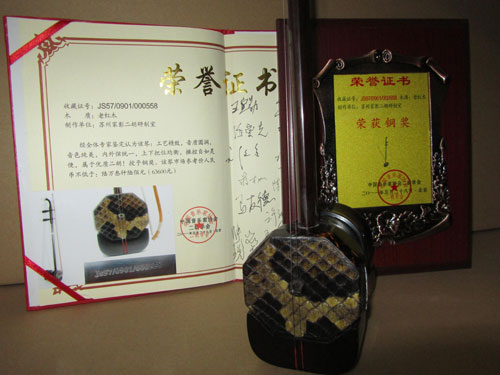二胡制作大師丁家彭先生1949年出生樂(lè)器世家,17歲隨其祖父學(xué)琴藝,并深得精髓,其聰穎好學(xué),悉心鉆研與 探求二胡制作,博得同行的欽佩贊許,更得了許多知名演奏家的稱贊,充分認(rèn)識(shí)到二胡制作每個(gè)環(huán)節(jié),都對(duì)二胡制作都有影響力,因此對(duì)二胡的選材,選料,蟒皮都十分嚴(yán)格,二胡整體穩(wěn)定性良好,環(huán)境干擾影響極小。